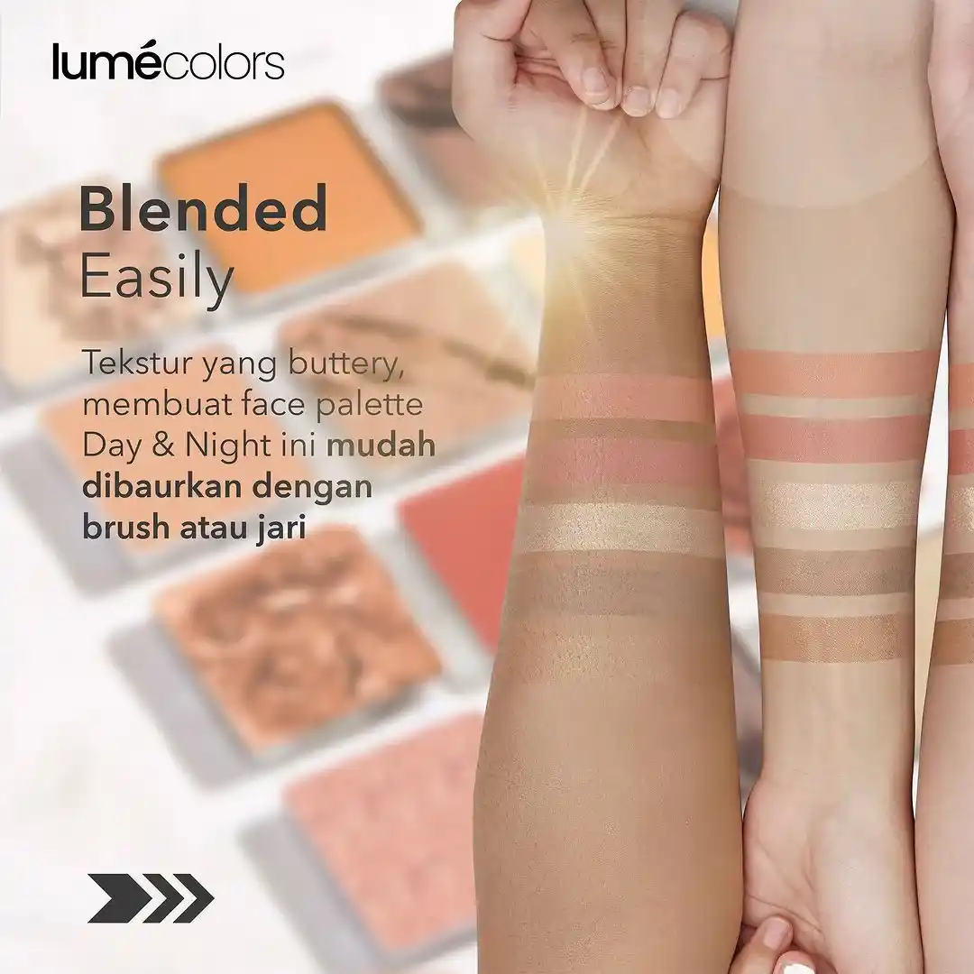 Kini tak perlu lagi ribet membawa banyak makeup di dalam tasmu, Karena day & night palette dari lumecolors sudah dilengkapi kaca dan terdiri dari 12 warna eyeshadow yang high pigmented & buildable, 2 warna blush on, 1 highlighter, 1 bronzer, dan 1 contour.
